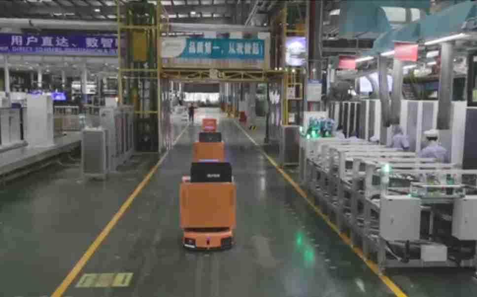 为车载冰箱物流配送打造的智能解决方案,,包含产中物流通过潜伏举升AMR搬运至线边,,,产后成品物流智能仓储,,流程包含产中物流智能齐套入库,,,,线边安灯叫料AMR智能配送至线边,,,成品入库、、、、出库,,,,通过无人堆高车机器人,,智能仓储管理替代人工作业管理,,实现更高存储、、、更高效率、、、、更具柔性化的解决方案。。